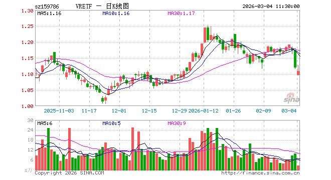 3月4日,截止午间收盘,VRETF(159786)跌0.98%,报1.108元,成交额288.92万元。VRETF(159786)重仓股方面,立讯精密截止午盘跌3.08%,京东方A涨0.00%,东山精密跌0.32%,豪威集团跌2.22%,TCL科技涨0.42%,歌尔股份跌1.90%,蓝思科技跌2.40%,领益智造跌0.77%,芯原股份跌3.60%,三安光电跌0.27%。